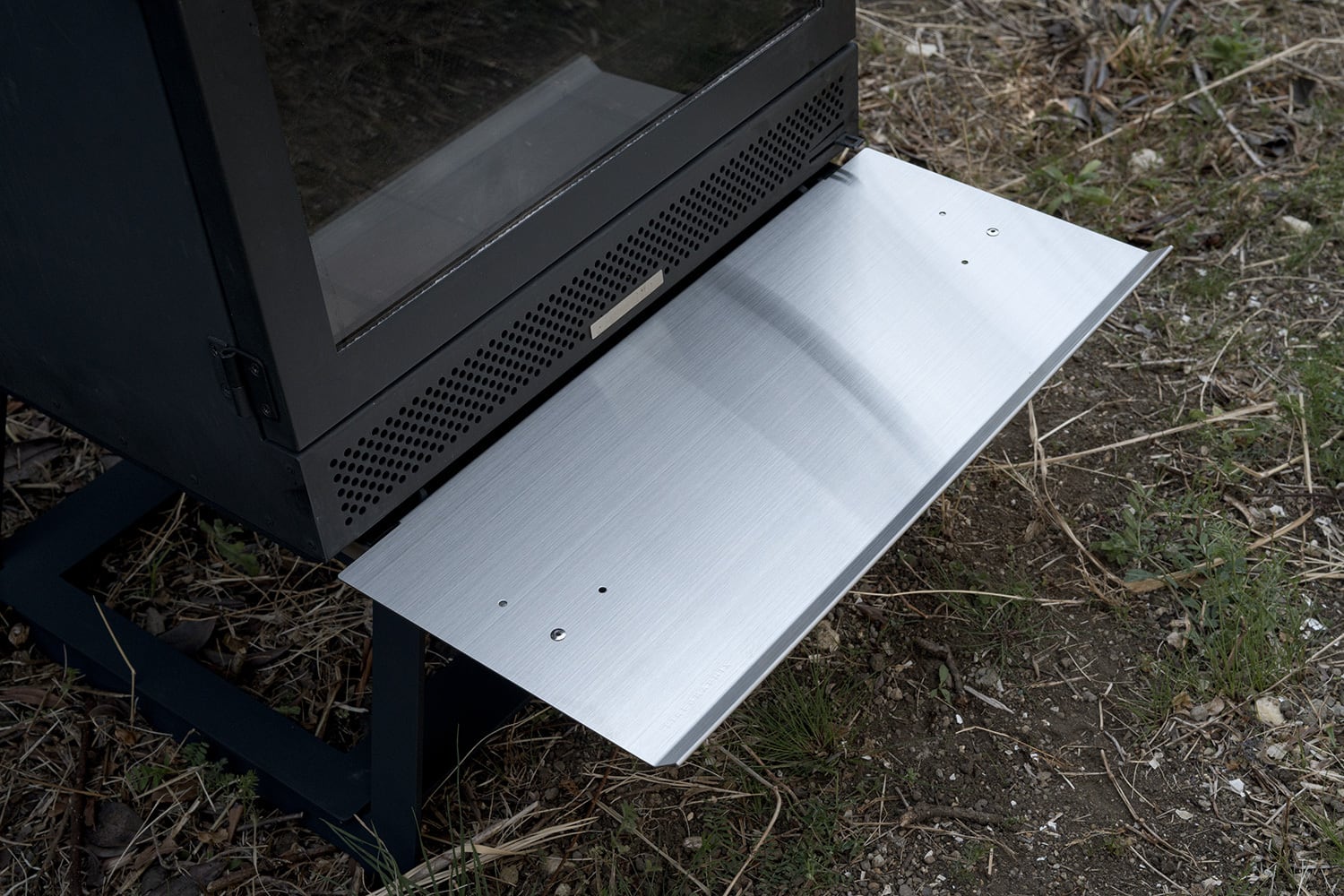薪ストーブの脚部分に差し込む折りたたみテーブルです